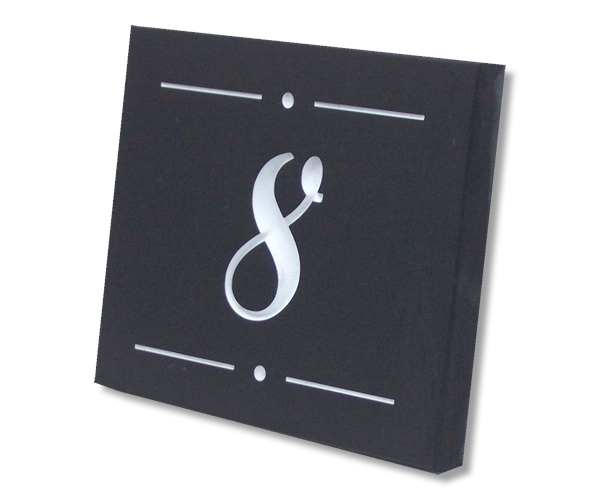Engraving:Script characters, painted whitewith a line and circle borderDimensions:150 x 125 x 20mm